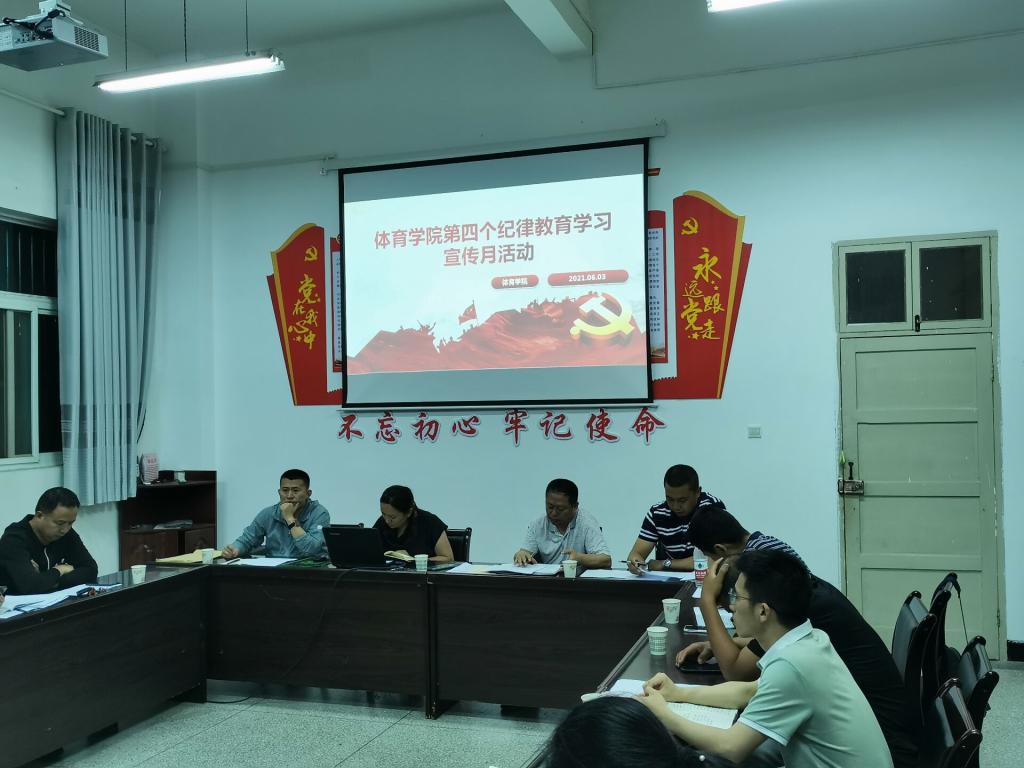 2021年6月3日beat365官方网站召开全体教职工大会,安排部署第四个纪律教育学习宣传月活动。
