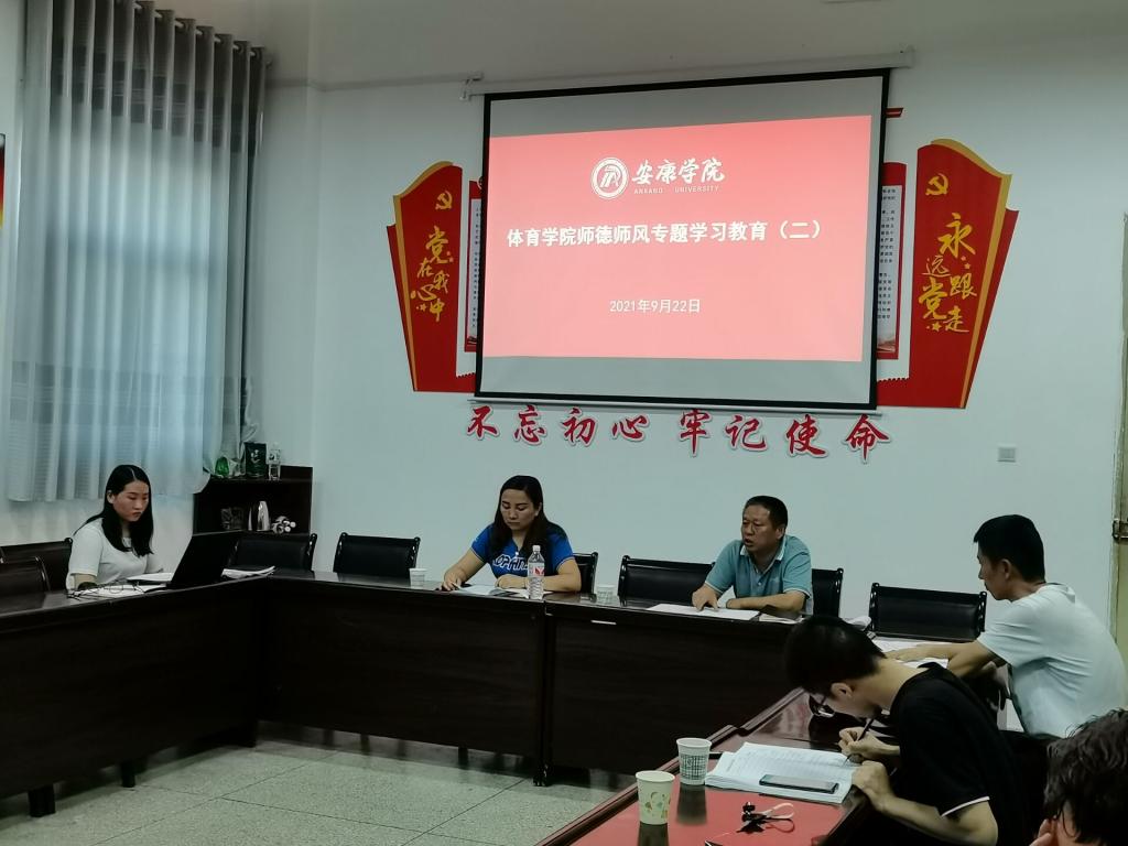 为了进一步贯彻落实学校关于师德师风建设工作的要求,切实抓好beat365官方网站的师德师风教育,促进立德树人的根本任务。2021年9月22日下午,召开了师德师风专题教育会。会议由党总支书记高立平主持。全体教师参加了会议。一是吕仙利院长学习和解读了安康学院师徳师风教育工作方案;二是学工办副主任王立领学了安康学院师德师风承诺书的主要内容;三是党总支书记高立平通报了近期发生在高校的8起违反师德师风的典型案例。通过这次专题学习,旨在进一步增强立徳树人的意识,扎实工作,更好服务于为党育人,为国育才的宏伟事业。
