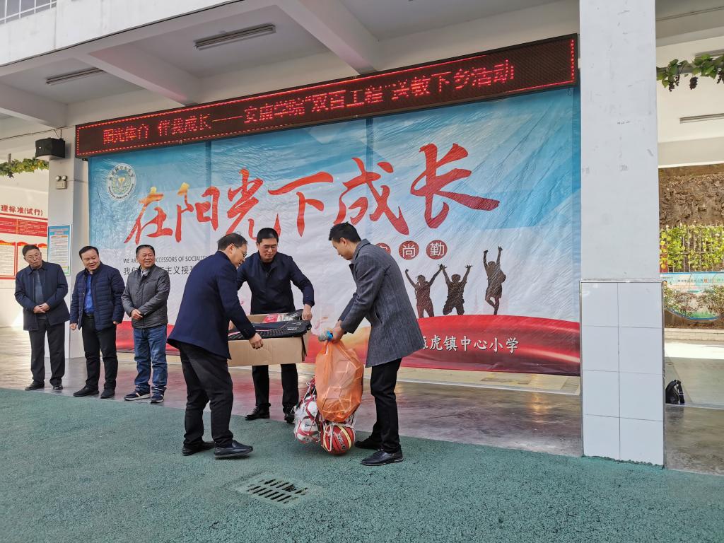 12月3日,beat365官方网站联合直属四支部赴白河县麻虎镇开展“阳光体育 伴我成长”——安康学院“双百工程”送教下乡主题党日活动。教务处处长汪义瑞、beat365官方网站党总支书记高立平、“双百工程”工作队队长付争方、教务处副处长陈国杰,以及教务处、beat365官方网站其他师生党员共计20余人参加了活动。送教下乡活动受到麻虎镇中心小学、初级中学的热情接待。