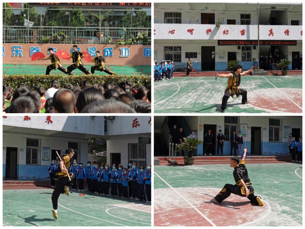 活动组还分别向三所小学捐赠了体育器材;为佐龙小学、晓道小学的师生们带去了精彩的武术表演;在民主小学向我校定点帮扶的新喜村籍学生捐赠了书包,观看了他们精彩的朗诵表演。