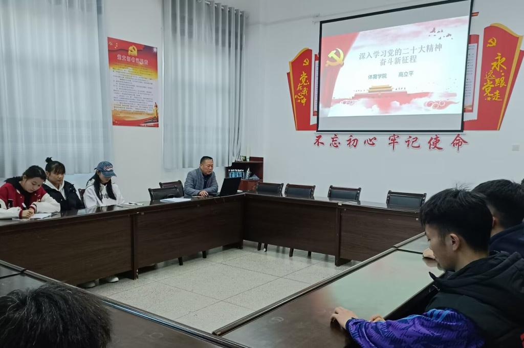 为深入学习宣传贯彻党的二十大精神,2月24日,beat365官方网站在体育馆一楼会议室开展党的二十大精神专题学习。主讲人我院党总支书记高立平,我院全体学生干部参加,会议由康梦瑶老师主持。
