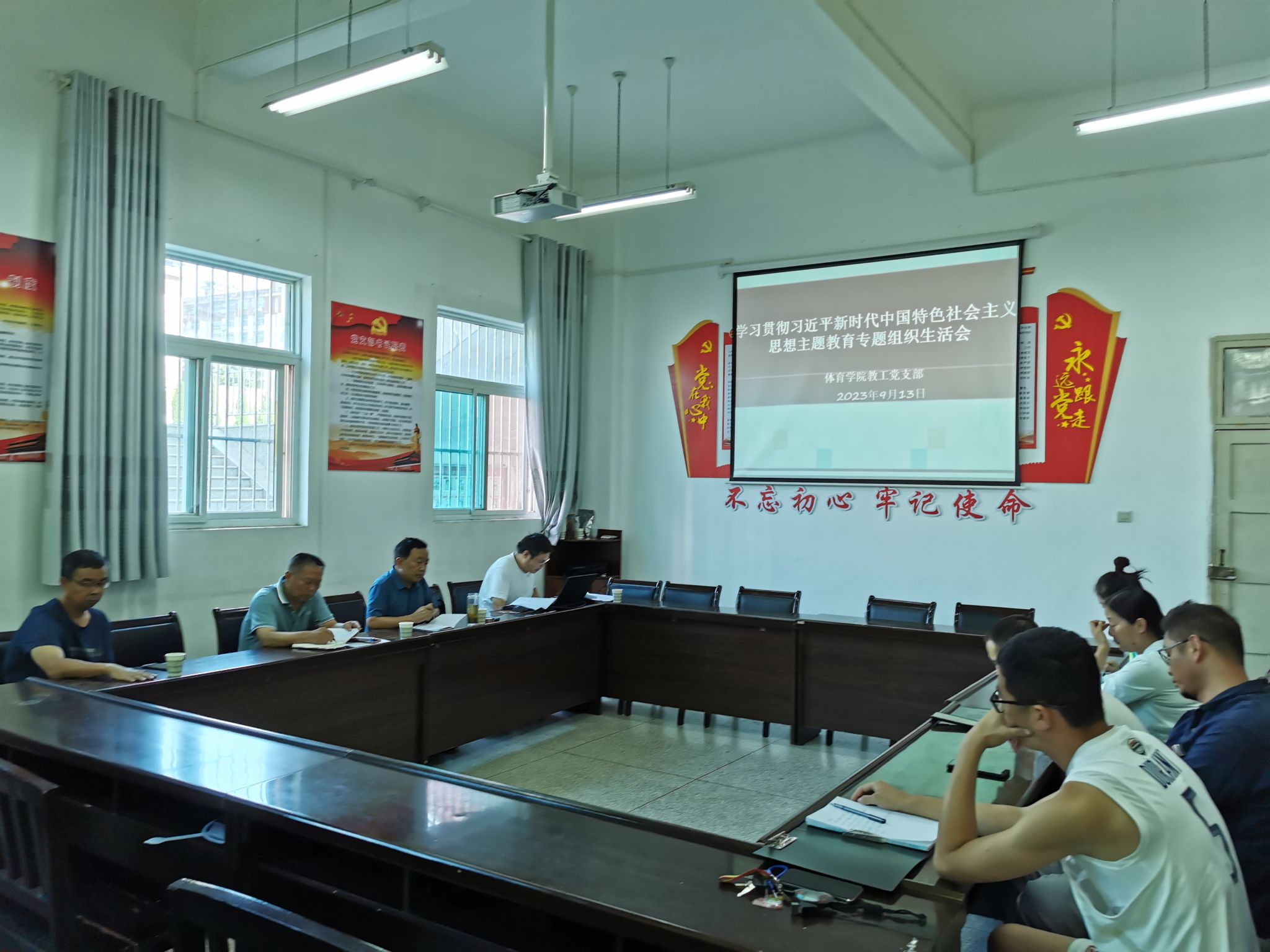 为深入贯彻落实党的二十大精神,严格执行党的组织生活制度,进一步发挥党员先锋模范作用,体育学院教工党支部于2023年9月13日下午召开了学习贯彻习近平新时代中国特色社会主义思想主题教育专题组织生活会,会议在beat365官方网站会议室举行,本次会议由支部组织委员贾西栋主持,支部全体党员参加,安康学院校长钟生海以普通党员身份参加,beat365官方网站党支部书记高立平也列席了本次会议。