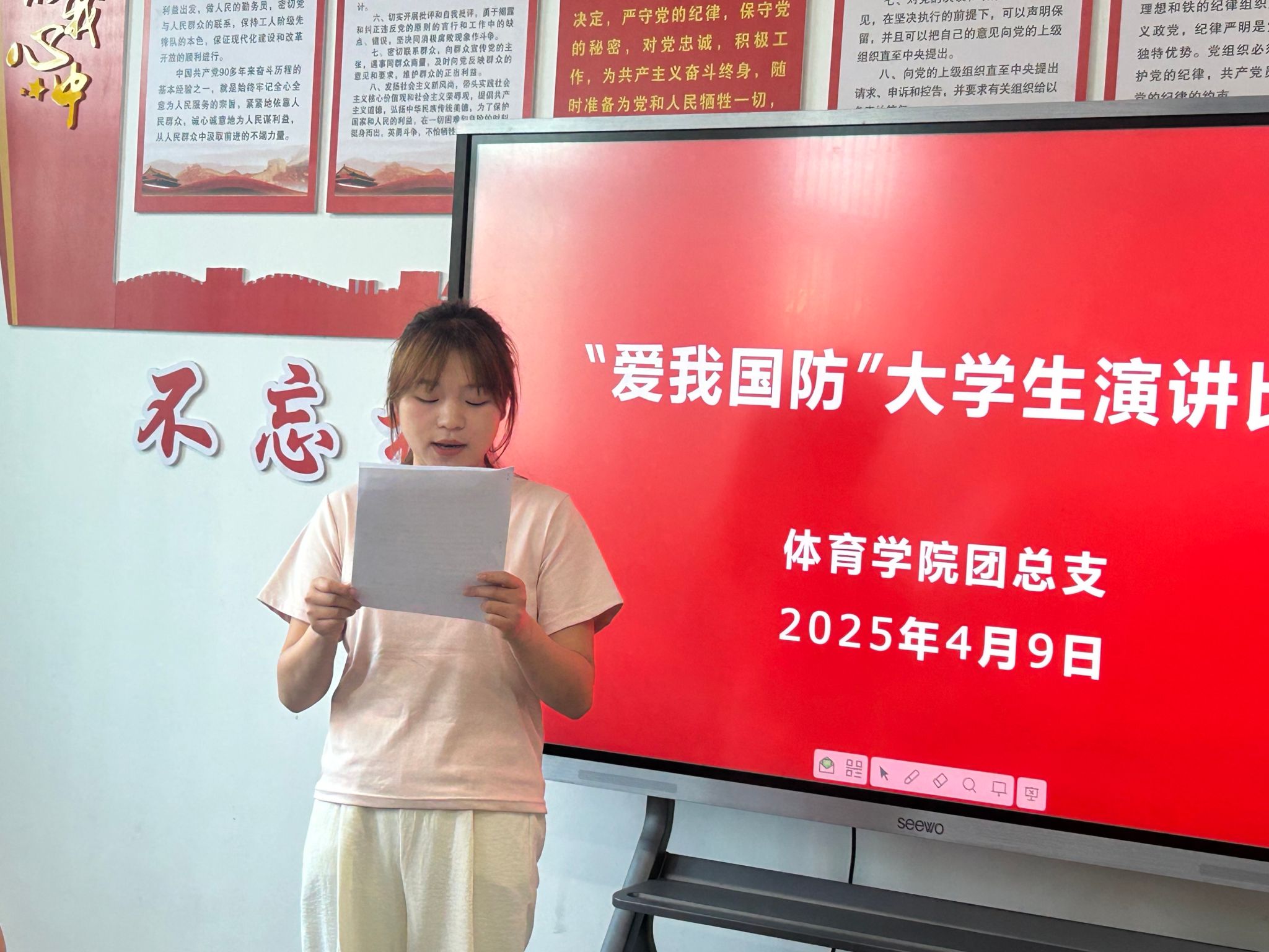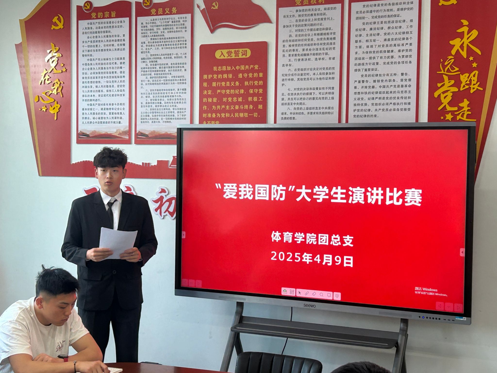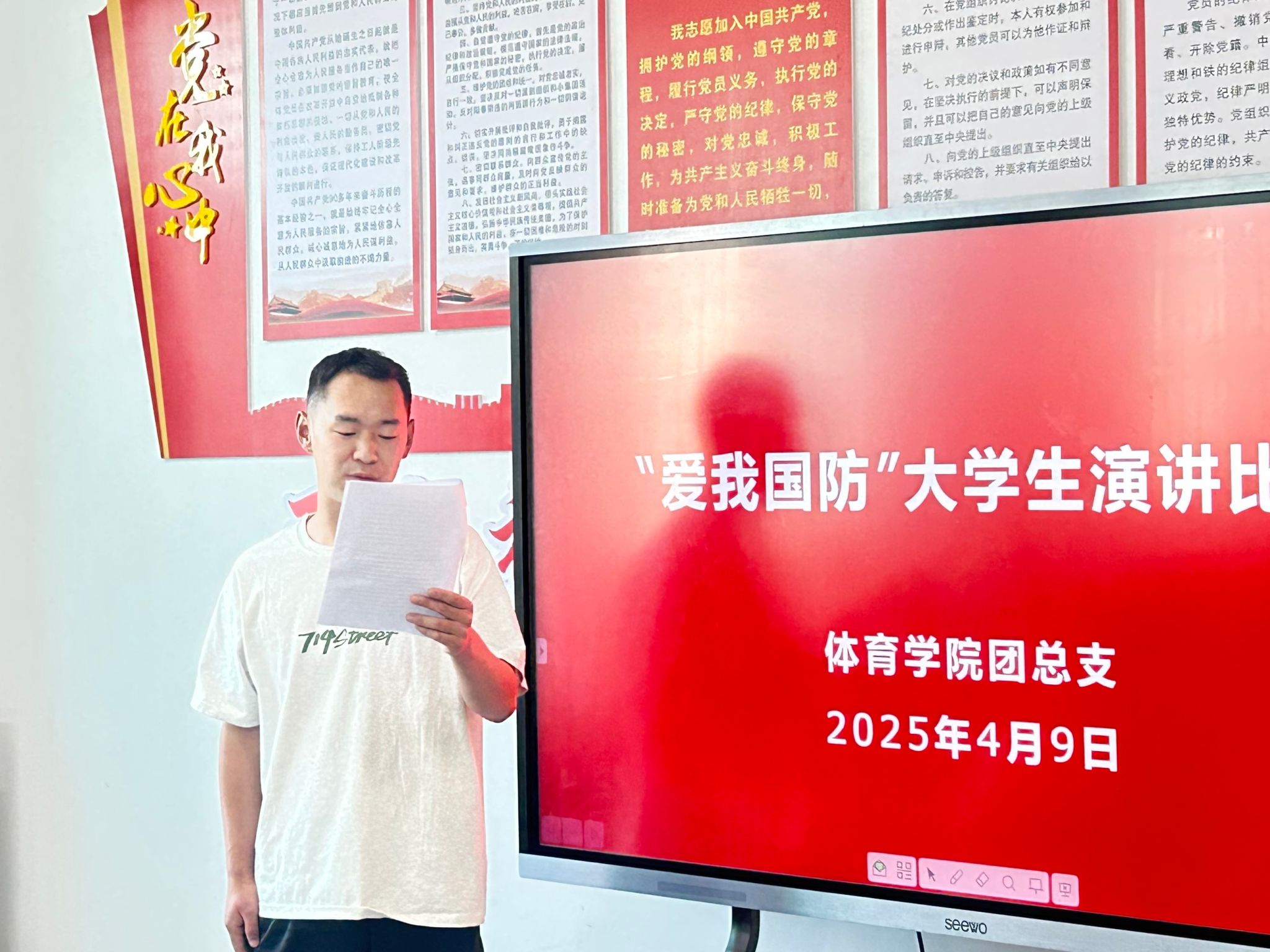 青春热血铸军魂,国防强音振人心。为深入贯彻落实习近平总书记关于加强全民国防教育的重要指示精神,充分发挥党建引领作用,推动党团共建深度融合,4月9日,beat365官方网站学生党支部、团总支成功举办“爱我国防” 主题演讲比赛。进入决赛的4名选手同台竞技,以铿锵话语诠释新时代青年的国防担当,为在场师生带来一场震撼心灵的精神洗礼。