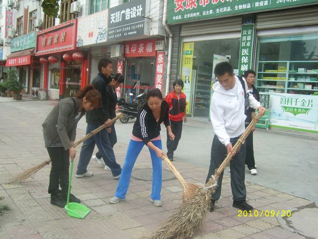 按照学院党委“关于印发《安康学院迎接省级卫生城市验收工作方案》的通知”精神,在学工部和体育系党总支的统一安排下,2010年9月30日上午,体育系辅导员梁鸿带领2007级学生党员、预备党员和入党积极分子共21人参加了“迎国庆”环境卫生清扫活动。