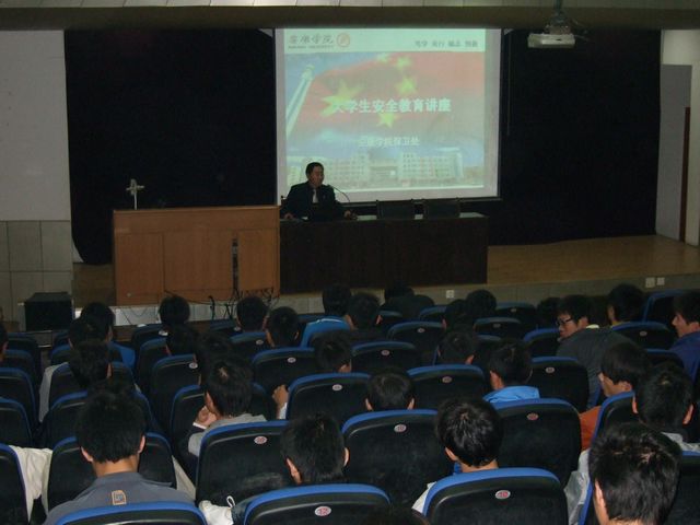 11月8日晚7:30-10:00,我院保卫处副处长王开忠老师在一号教学楼六楼报告厅为体育系和化学化工系2010级全体新生做了题为“大学生安全教育”的专题讲座。