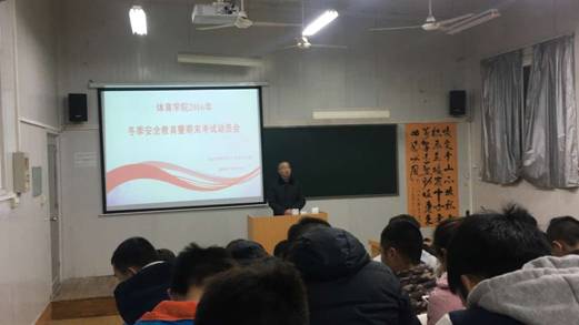 为保证教育教育效果,聘请了多年从事学生教育管理的工作人员分年级开展教育专题讲座。院党总支书记沈军老师、院长冯德学老师、学工办主任郭建鹏老师分别于12月15日、19日、21日在6407教室针对2014级、2015级、2016级体育教育专业学生召开了专题教育会。