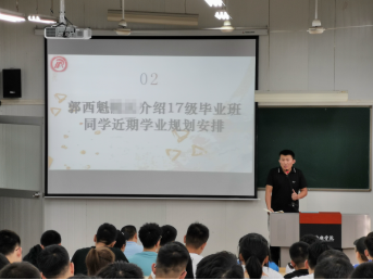副院长郭西魁介绍了2017级毕业班同学近期教学安排,并就毕业班实习、毕业论文开题、考研报考等给同学们提供相关建议。