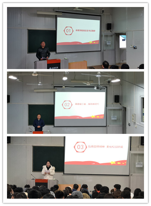 为响应校团委号召,带领我院师生学习雷锋精神,推动我院的精神文明建设,形成良好的校园文化氛围。3月10日,体育学院举行“青春耀三秦,服务新时代”学雷锋月活动启动仪式,学院党总支书记高立平、综合办主任郭建鹏、团总支学生会成员、各班团支书以及20级全体学生参加仪式。仪式由团总支书记康梦瑶主持。