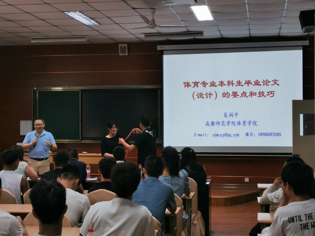 为提高我院学生毕业论文撰写技能,6月11日下午14:30,成都师范学院beat365官方网站院长吴润平教授来我院做了以“体育专业大学生毕业论文(设计)的要点和技巧”为主题的学术讲座,beat365官方网站全体18级、19级学生参加了本次报告会,报告会由学院党总支书记高立平主持。