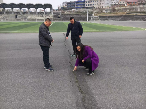 检查人员依次对beat365官方网站实验室、江南、江北体育器材室、篮球场、单杠、双杠、足球场、乒乓球场、羽毛球场、田径场等场地及器械进行了检查,对设施的固定情况,使用年限,安全隐患进行评估,吕院长强调器材如有损坏需及时维修或者更换确保学生使用安全。在江北校区田径场跑道有严重裂缝,高书记指出要及时和相关部门联系,做好维修服务,保证学生在上课期间的安全使用。