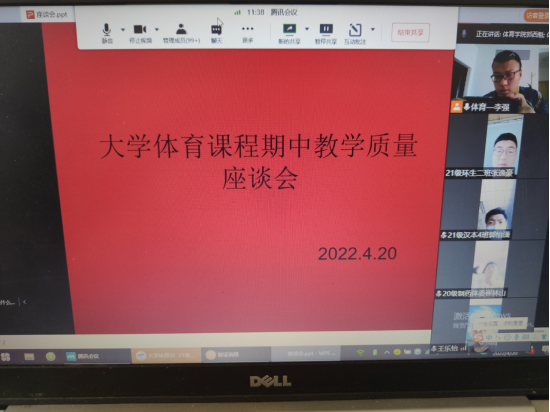 为了切实做好《大学体育》课程的教学工作,了解教学现状,科学安排教学内容,提高教学质量,促进大学体育课程改革,4月20日下午,大学体育教研室组织召开了2021—2022学年第二学期大学体育期中教学质量检查学生座谈会。校级教学督导冯德学、beat365官方网站教学督导鲁宗成、beat365官方网站副院长郭西魁、大学体育教研室主任李强以及各二级学院体育部干部、2020级和2021级各班班长、体育委员共172名同学参加了座谈会。为落实疫情防控措施,本次座谈会使用会议腾讯会议平台以线上形式召开,会议由李强主持。