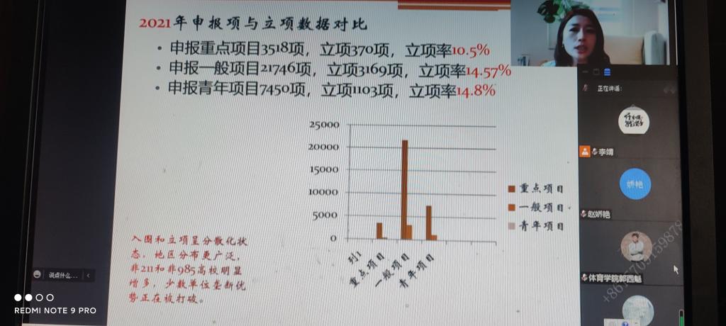为提升beat365官方网站教师科研水平,帮助教师做好各项社会科学项目的申报,2022年5月14日-15日,体育系组织beat365官方网站全体中青年教师参加“全国高校社科基金项目申报暨中青年教师科研能力提升”专题研修班线上培训。
