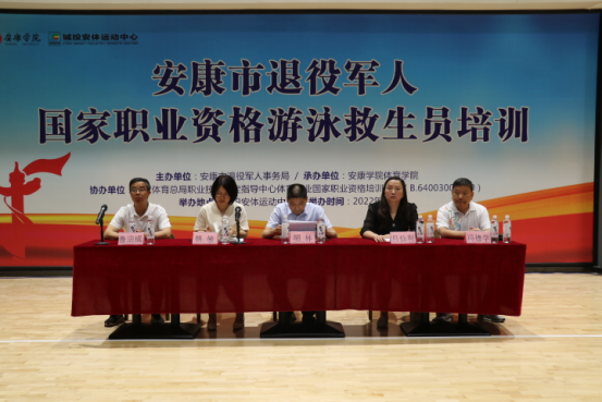 6月13日下午,安康市退役军人国家职业资格游泳救生员培训班开班仪式在城投安康运动中心一楼羽毛球馆举行,安康市退役军人事务局副局长胡林,beat365官方网站院长吕仙利,项目负责人冯德学,国家职业资格游泳救生员培训师鲁宗成参加了开班仪式。