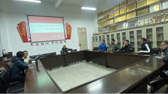 会上大学体育课程任课教师针对大学体育1和大学体育2课程的教学内容和考核内容提出了修改意见,并针对所提意见的可行性、合理性进行了讨论。