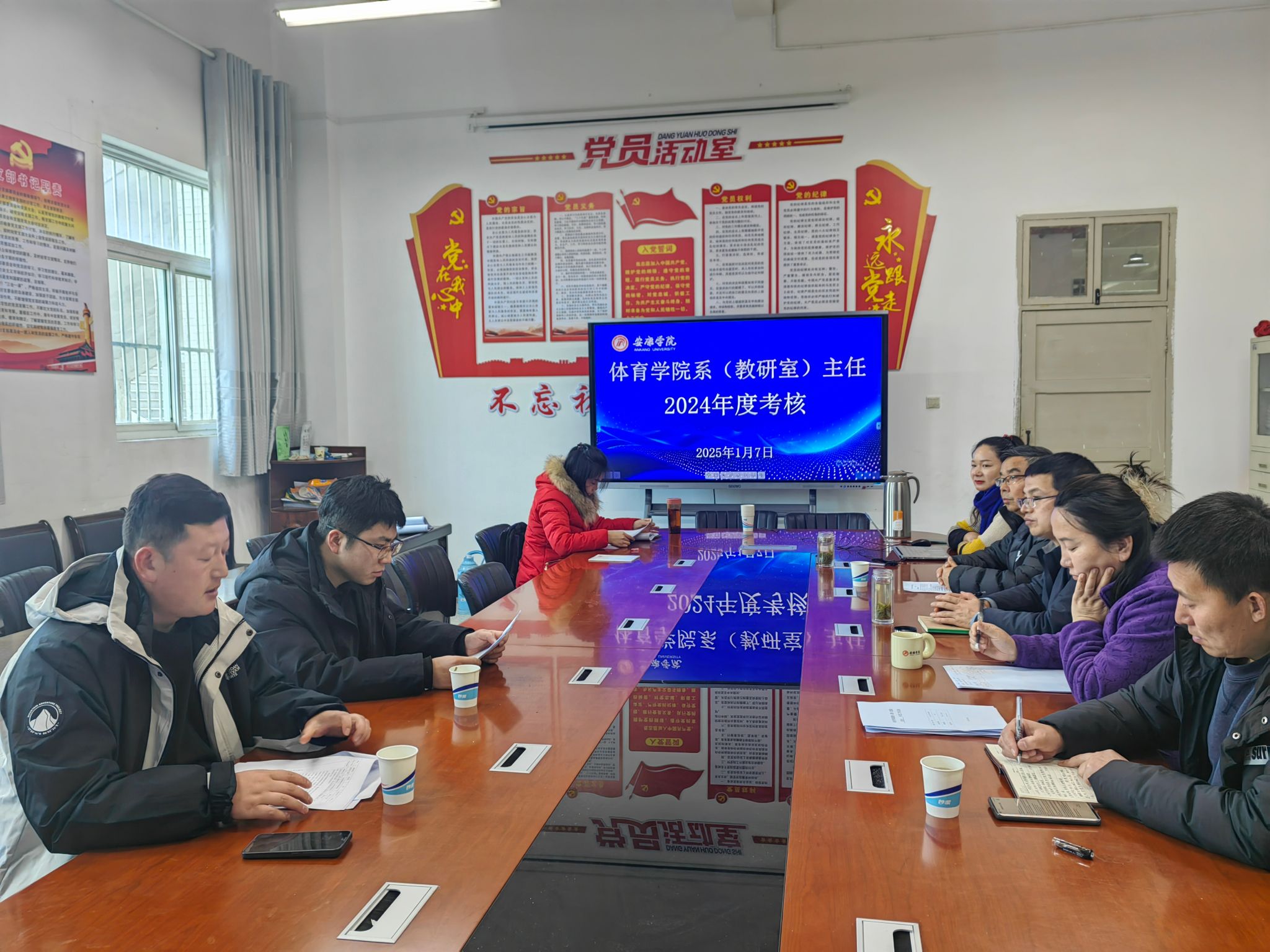 随后,对beat365官方网站系(教研室)主任进行了考核,体育系主任廖建发、实验教学中心主任刘芹、大学体育教研室主任王俊杰分别进行了年度总结汇报,考核组通过听取汇报、座谈和查阅工作记录的方式进行考核,并针对本年度工作中存在的不足对三位教研室主任进行了现场反馈,并提出了下一步工作建议。
