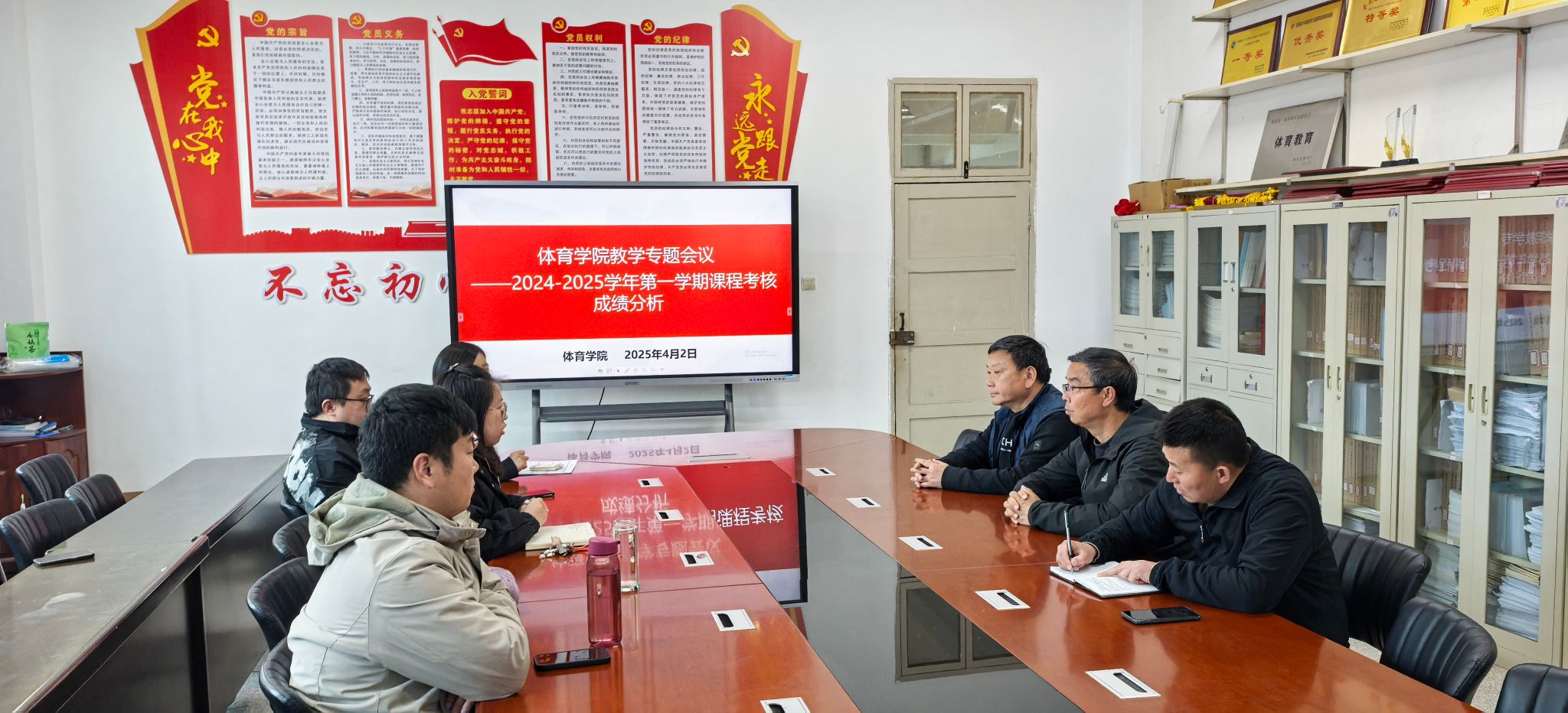 会议伊始,教学办主任赵娇艳系统梳理了上一学期课程考核成绩数据,重点对不及格率偏高的课程考核成绩现状进行了汇报,主要涉及体育教育专业2023级2班运动技能学习与控制、2024级2班运动解剖学等课程。