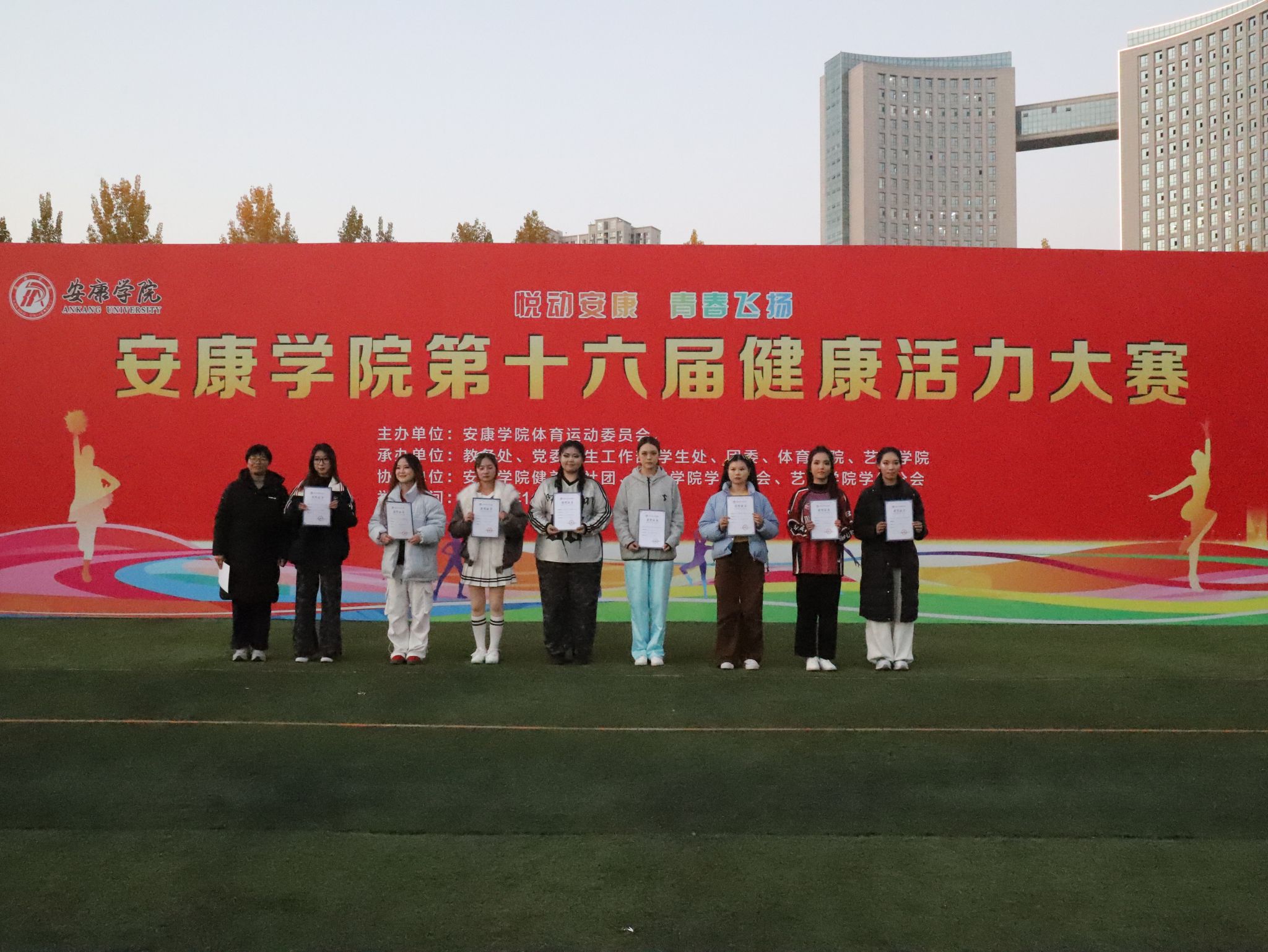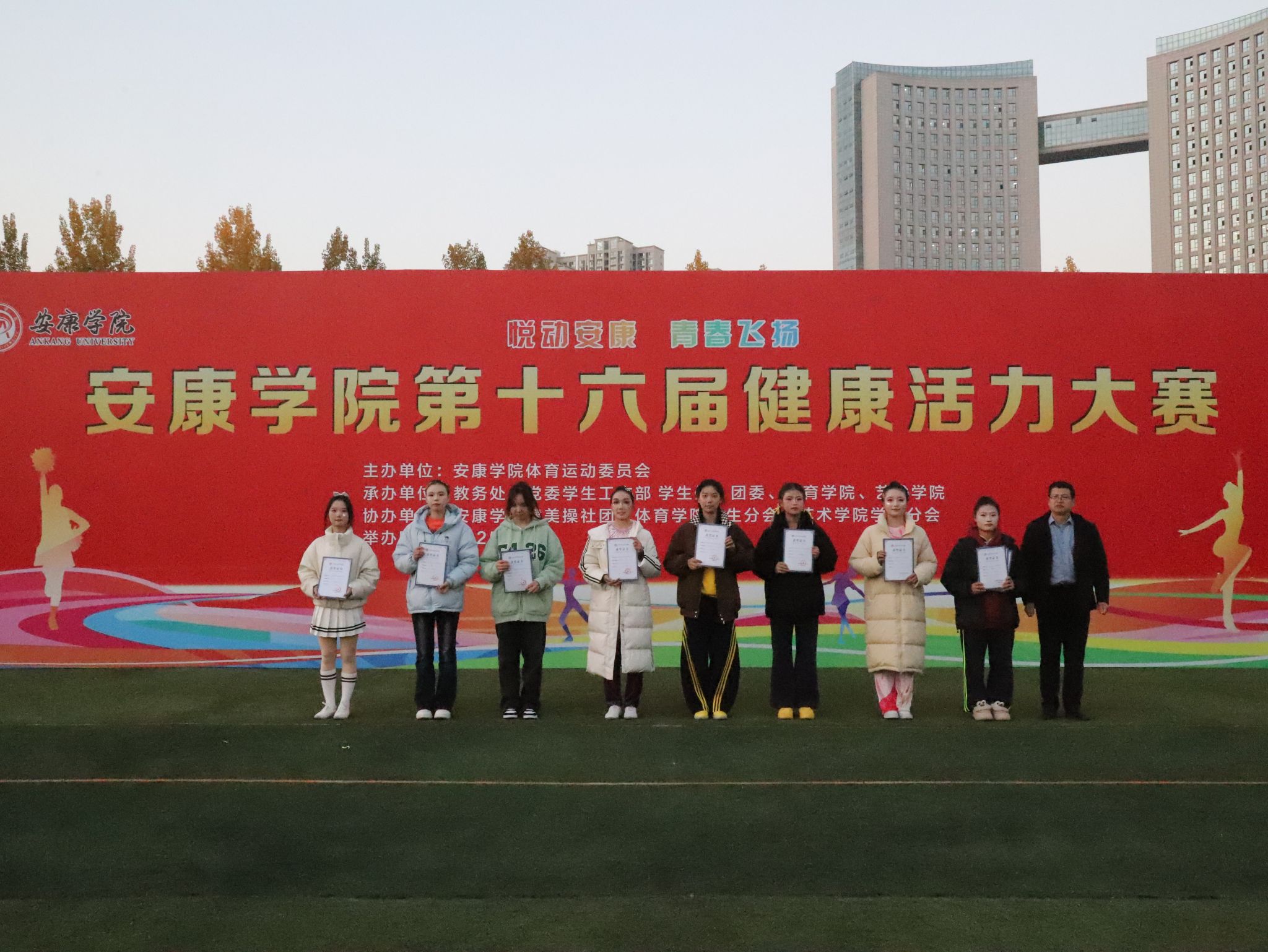 近日,安康学院第十六届健康活力大赛圆满落幕。beat365官方网站学子在比赛中发挥出色,取得优异成绩:校园健身操、花球啦啦操两个项目均获一等奖,健身排舞项目获得二等奖。凭借稳定发挥与团队协作,学子们在大赛中脱颖而出,为学院体育事业发展添砖加瓦。