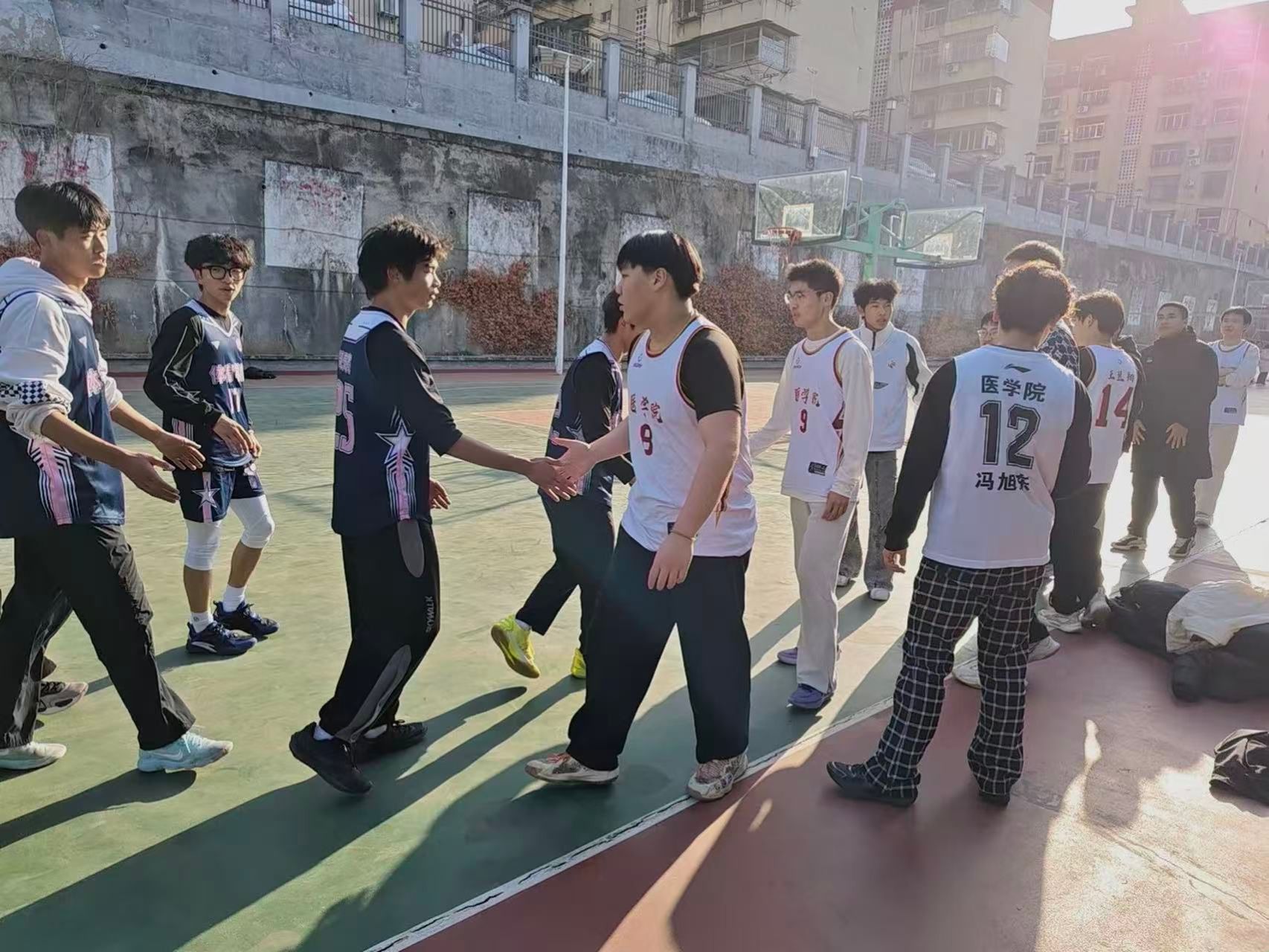 本次比赛分男子组与女子组两场进行。赛场上,我院学子展现出扎实的篮球基本功、出色的战术执行力与良好的团队协作意识,传球精准、攻防有序,充分发挥了日常训练中积累的专业素养。医学院队员同样表现出顽强的拼搏精神和积极的比赛态度。双方在友好热烈的氛围中切磋技艺,虽有激烈的身体对抗与偶尔的磕碰,但始终秉持“友谊第一、比赛第二”的宗旨,以握手和微笑化解小插曲,生动诠释了竞技体育的魅力与温度。