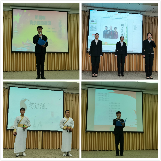 伴随着柔美的音乐,选手们一个个正装上台,或激昂,或柔缓,或急促,或随和。比赛现场气氛热烈,同学们热情高涨。参赛选手或个人或组合,以饱满的激情、激昂的语言、大方得体的举止来展现自己的实力,把对党和祖国的感情表达的淋淋尽致。有的诉说着对祖国的热爱,有的诠释了对梦想的热爱,有的回忆着青春的甘甜,这一首首诗歌都在选手们口中激昂,飞扬!每一位朗诵者经过精心的准备,结合自身感受,声情并茂地讲述着对抗疫逆行者的感激之情,以昂扬的激情带领观众重温了那段惊心动魄,热血沸腾的时期。