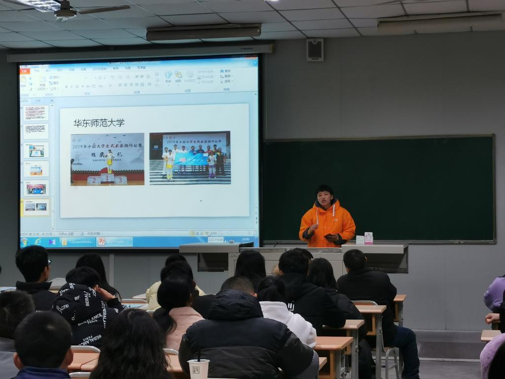 雷欣同学从学习、思想、课余生活等方面进行了分享,着重介绍了我院热门专项,鼓励同学们充分利用课余时间,大胆尝试,拓宽业务面,要充分展示体育生吃苦耐劳的精神。分享了大学四年生涯所积累的经验,告诫同学们在学习时要放低姿态,踏实做人,认真做事。