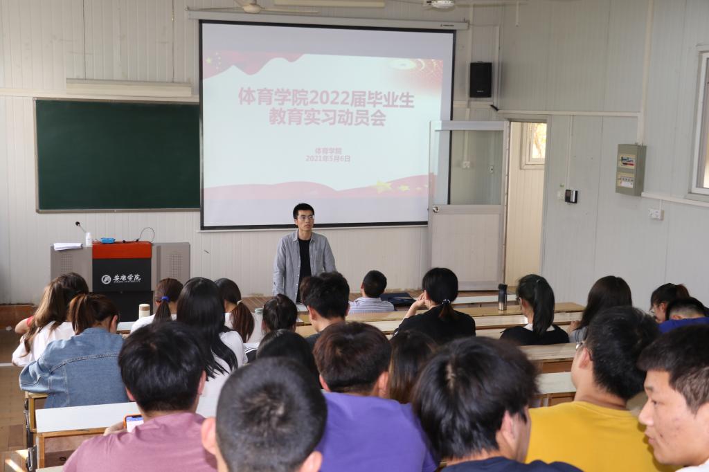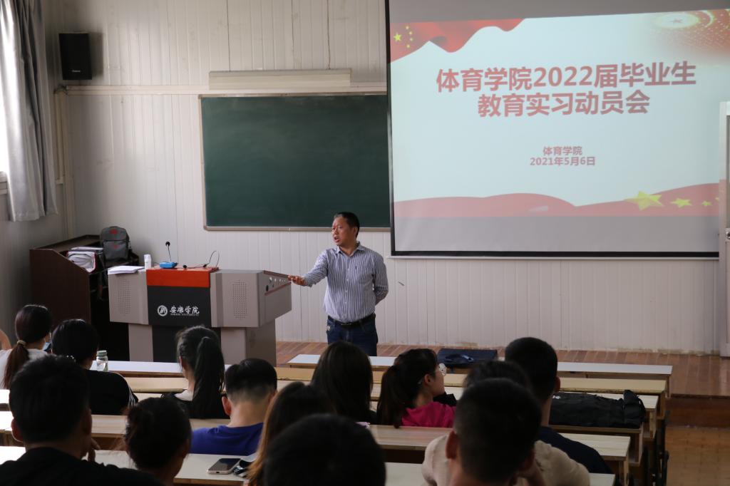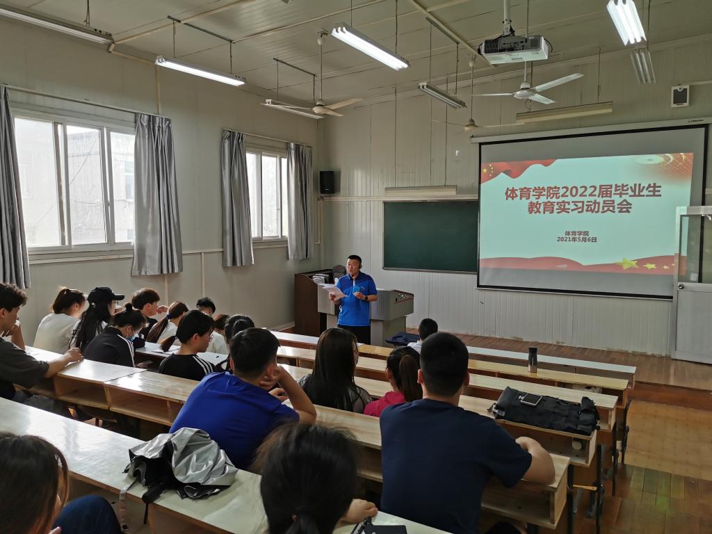 为不断提高体育教育专业学生综合素质和教学技能,推动一流专业发展,5月6日下午,beat365官方网站在6405教室召开2022届毕业生教育实习动员大会。beat365官方网站党总支书记高立平、教学副院长郭西魁、学工办副主任王立、2022届全体毕业生参加了会议,会议由王立主持。
