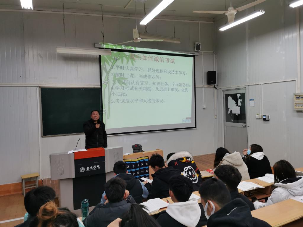 会上,王立老师、康梦瑶老师,分别组织同学们学习了《普通高等学校学生管理规定》《安康学院学生考试纪律处理暂行办法》等有关规定,要求每一位同学从现在起扎实复习,考场诚信答卷,为本学期交上一份诚信满意的答卷;班团干部,带头遵守考试纪律,带动身边的同学对本班、本宿舍的同学做好提醒服务。