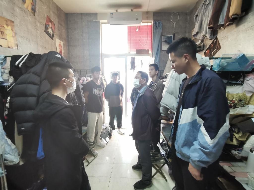 在宿舍,高立平、王立、康梦瑶与同学们进行亲切地交流,叮嘱同学们疫情常态化管理下要调整好自己的心态,设立好学习目标,规划好本学期的学习计划,调整好作息,以饱满的精神状态投入到学习生活中去;以主人翁的身份主动参与学校防疫工作,为抗疫成功贡献自己的力量。