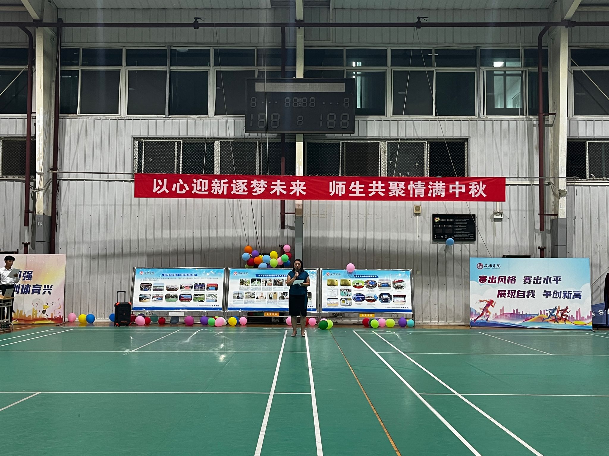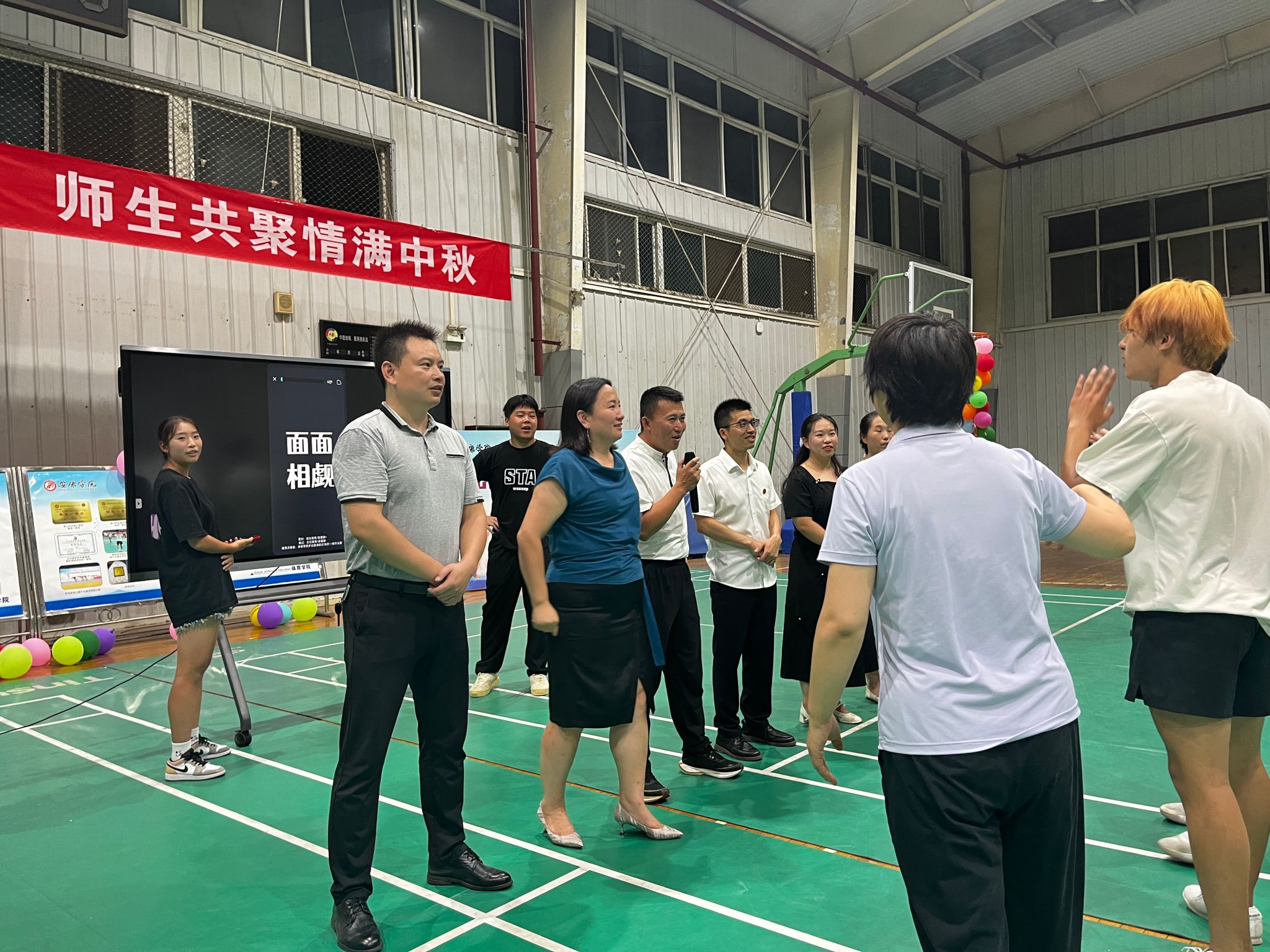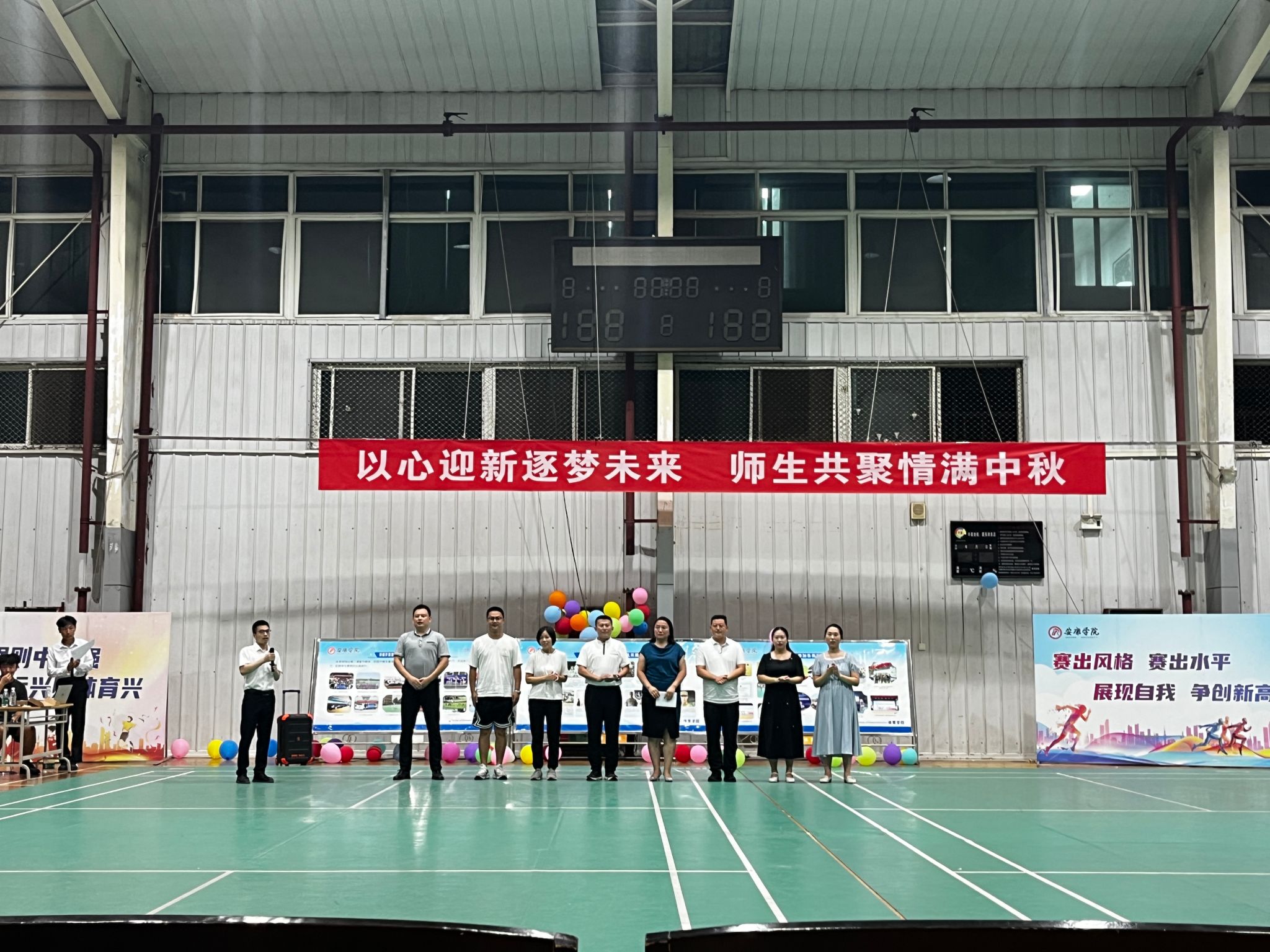 9月14日晚,我院在江南校区体育馆2楼举办“以心迎新逐梦未来· 师生共聚情满中秋”2024年迎新晚会。院长吕仙利,党总支副书记郭西魁、工会分会主席马玉琴、体育系主任廖建发、实验教学中心主任刘芹、大学体育教研室主任赵娇艳、党政办公室主任陈欢、学工办主任王立、团总支书记王毅、新生辅导员院柯等参加了本次迎新晚会 。