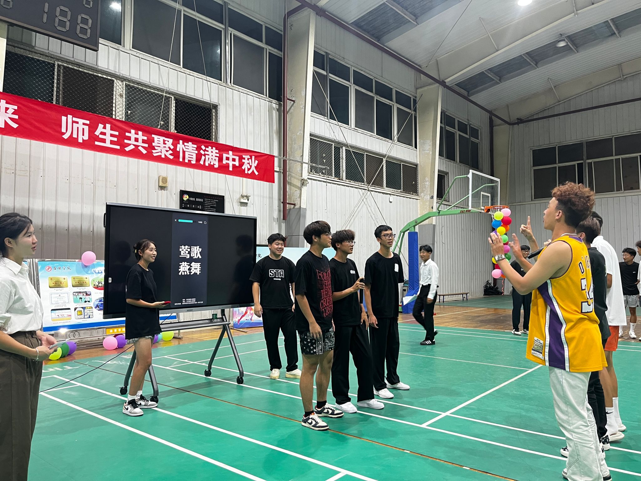 本次迎新晚会分为介绍beat365官方网站教师、院长致开幕词、节目环节和闭幕仪式四个部分,演出内容涵盖了歌曲、舞蹈、武术表演、吉他独奏、健美操等多种形式。在节目表演以外, 本次晚会还穿插了你画我猜和猜灯谜两轮互动游戏环节,同学们积极参与,掌声、欢呼声此起彼伏。在近两个小时的活动过程中,十个类型多样的演出节目轮番上演,师生合作为观众们带来了一场高潮迭起的视听盛宴。