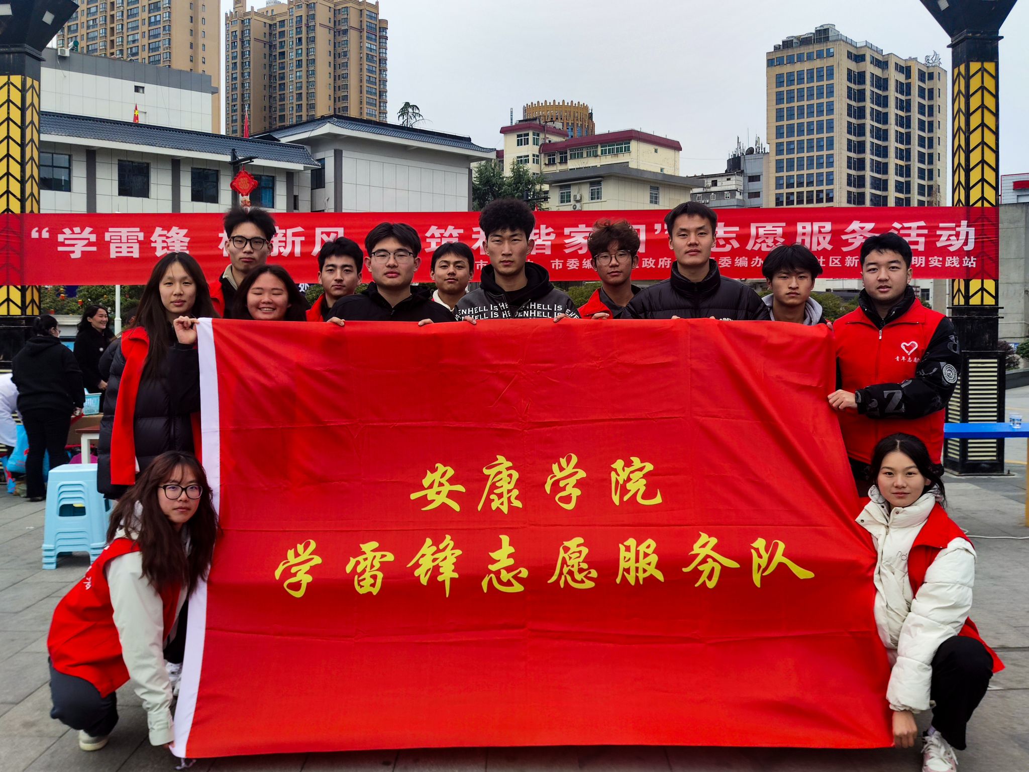 为弘扬新时代雷锋精神,深化文明实践行动,3月5日,beat365官方网站团总支联合汉滨区育才社区,在天宝康郡广场共同开展了”学雷锋,树新风,共筑和谐家园”志愿服务活动,通过文明宣传与健康服务相结合的方式,为社区居民送去关怀与温暖。