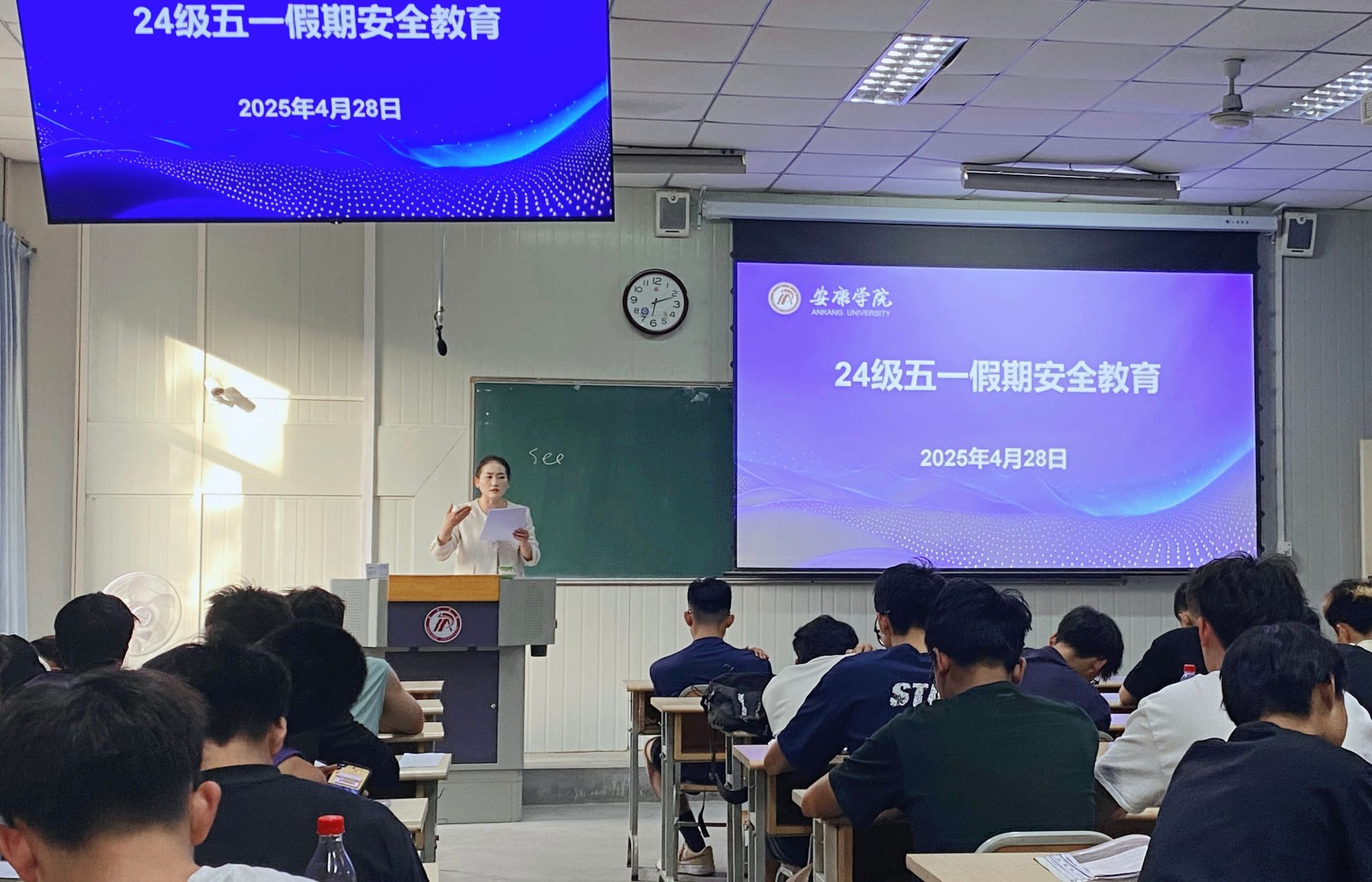 4月27日-30日期间,全体辅导员开展五一假期安全教育,着重围绕国家安全、人身财产安全、交通出行安全、网络安全、消防安全、宿舍安全、食品健康安全及防电信诈骗、防溺水、防灾避险等方面系统全面地进行梳理讲解。会上,辅导员们结合实际案例、分层次、有重点的开展安全教育。针对2025届毕业生重点提醒学生们利用假期时间,多方位多层面多场次积极参加正规的招聘面试,增加就业机会率;2022级突出强调做好自身职业规划,结合自身实际,抓早抓细筹划后期目标;2023级着重在积极参与社会服务实践方面进行教育引导,提升学生们回报社会服务社会的意识;2024级重点强调学风建设,注重习惯养成,提升学习意识,打牢学业基础。
