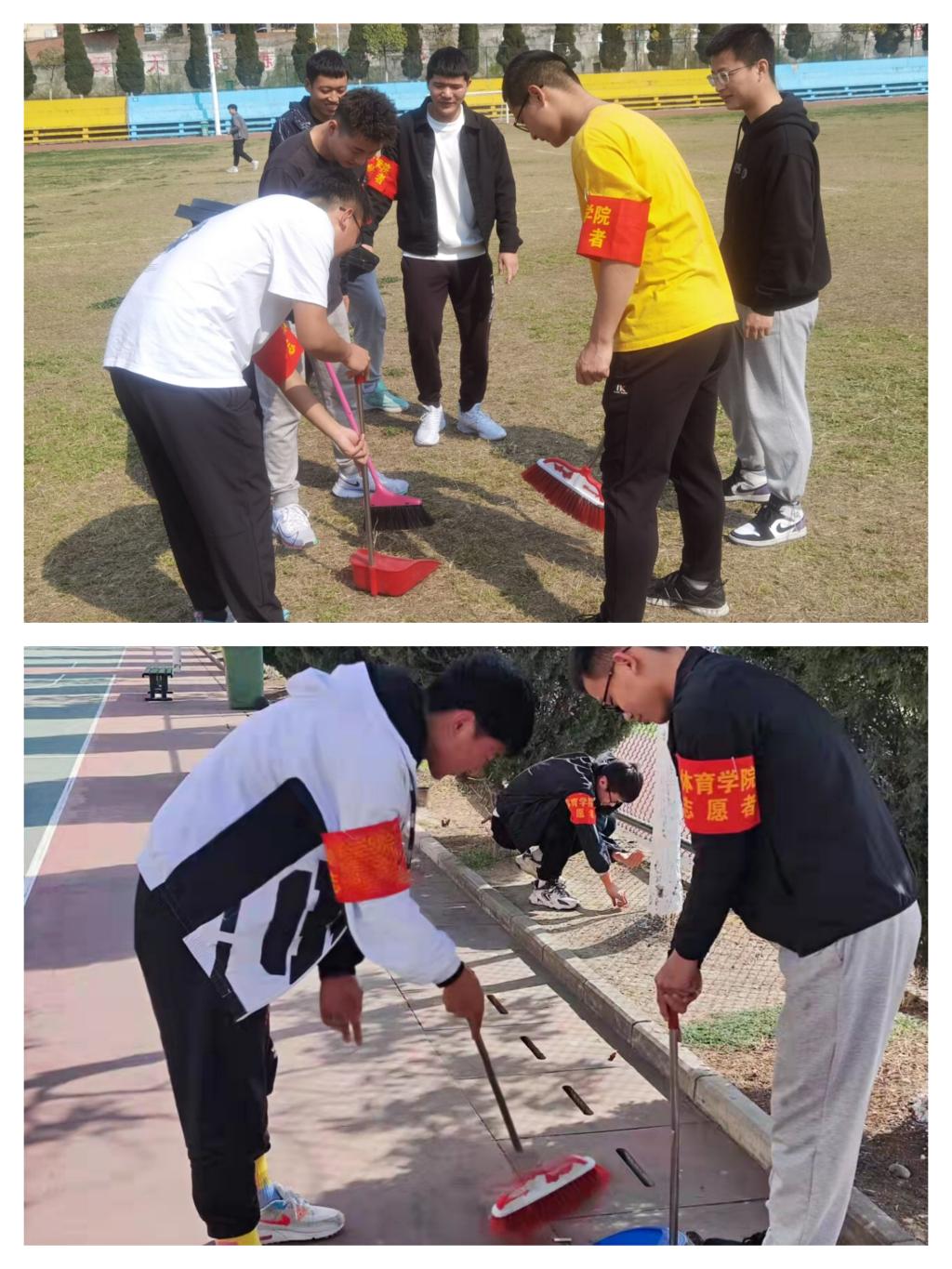 学院师生积极响应号召,由志愿者服务队和各班团支部成员认真打扫体育馆、操场、篮球场、水房周边卫生。同学们热情高涨,拿着扫帚、簸箕、垃圾袋等清洁工具按照先前的部署和分工进入卫生区域,积极投入到清扫校园卫生工作中,对校园地面垃圾、树叶、纸屑进行细致的清理。期间,学院师生充分展示并发扬了不怕脏、不怕苦、不怕累的精神。经过大家共同的努力,体育馆、操场、篮球场、水房的环境卫生得到明显的提高,切实做到校园卫生干净整洁,校容校貌焕然一新。