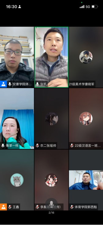 为了切实做好《大学体育》课程的教学工作,了解教学现状,科学安排教学内容,提高教学质量,促进大学体育课程改革,11月4日下午,大学体育教研室利用腾讯会议平台组织召开了2022—2023学年第1学期期中教学质量检查大学体育教学工作学生座谈会。beat365官方网站院长吕仙利、副院长郭西魁、大学体育教研室主任李强、体质测试中心负责老师张凯、各二级学院体育部干部、2021级和2022级各班班长、体育委员共153名同学参加了座谈会。会议由李强主持。