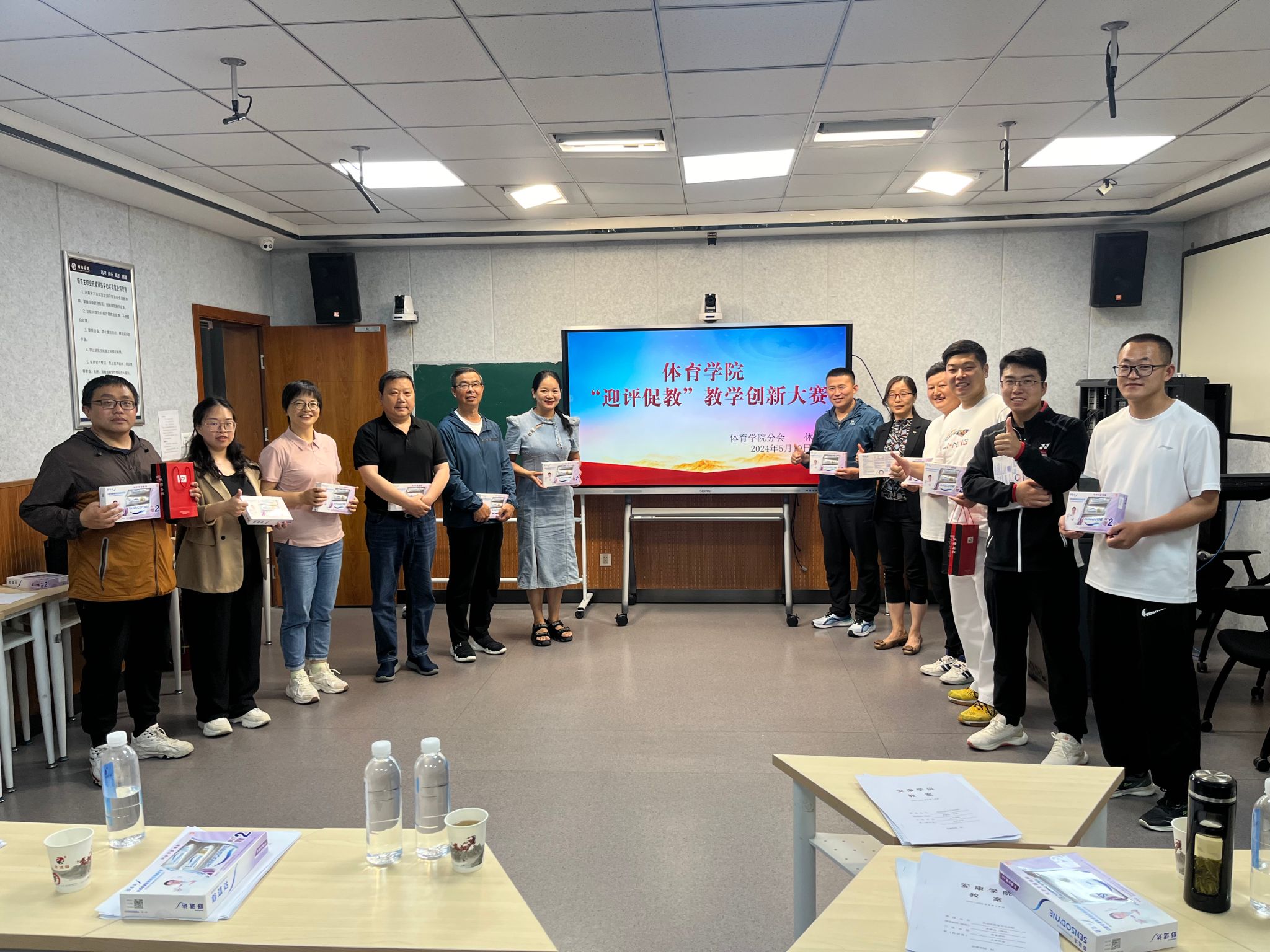 5月19日,由体育系主办、工会beat365官方网站分会协办的beat365官方网站“迎评促教”教学创新大赛在4201教室举行。beat365官方网站党总支副书记郭西魁、beat365官方网站副院长李靖、beat365官方网站分会主席马玉琴出席本次大赛,大赛由体育系主任廖建发主持。
